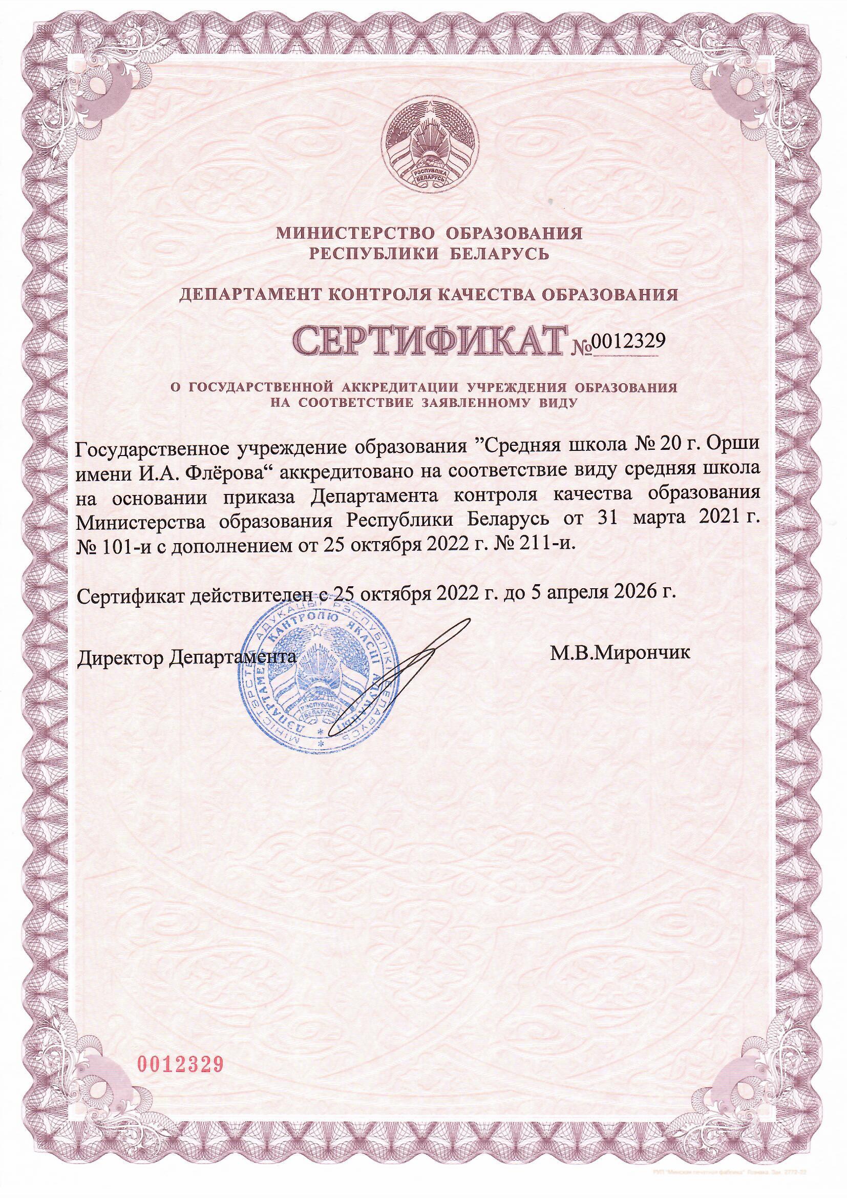 2 июня 2022 года состоялось торжественное мероприятие, посвященное присвоению учреждению образования имени Героя Российской Федерации Ивана Андреевича Флёрова и открытие мемориальной доски. Это событие особенно значимо и символично в Год исторической памяти, это еще одна страница не только в истории школы, но и в современной истории Оршанщины, вклад в патриотическое воспитание молодежи.